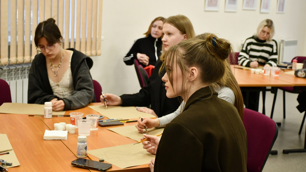 Bei der Begegnung waren Studierende des Fachbereichs Design und Kunstpädagogik der Staatlichen Pädagogischen Universität Nowosibirsk sowie Vertreter des Regionalschulkollegs für Kultur und Kunst anwesend. Alle Anwesenden begannen mit einer Material- und Technik-Einführung, bevor sie sich an die Erstellung eigener Skizzen und die Suche nach Kompositionen wagten.